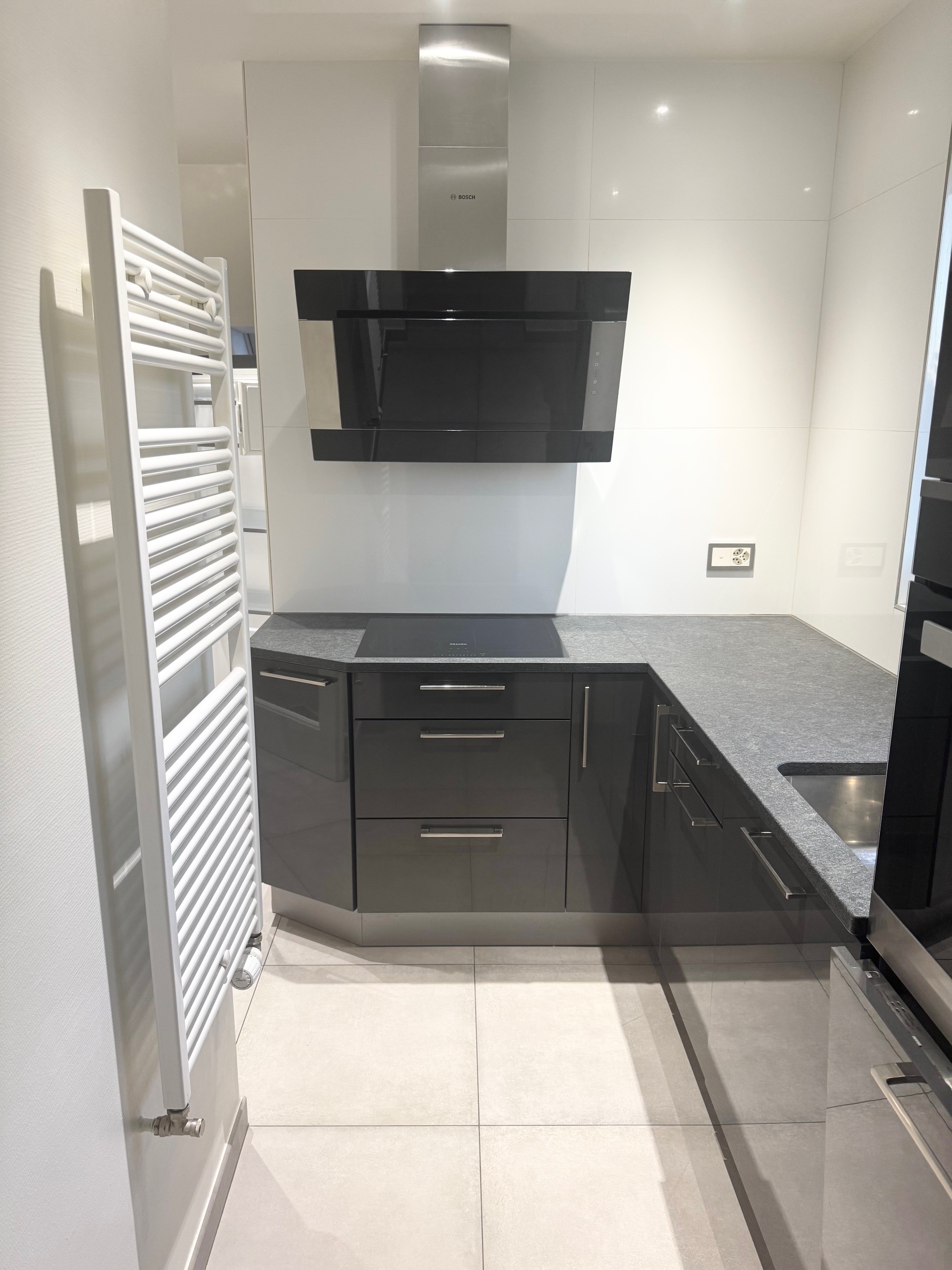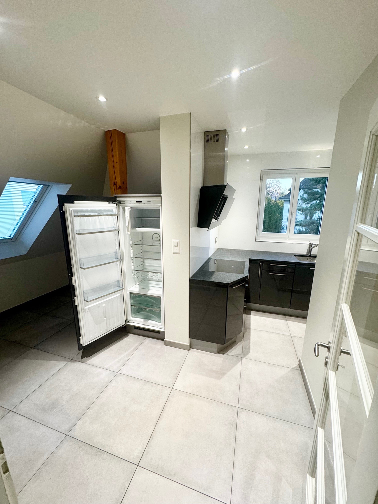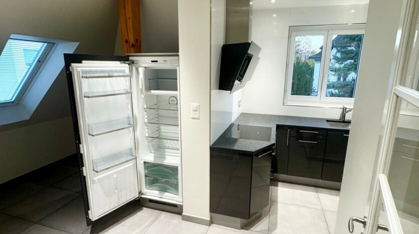 – Une cuisine agencée avec réfrigérateur, lave-vaisselle et cuisinière à induction