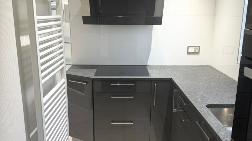 – Une cuisine agencée avec réfrigérateur, lave-vaisselle et cuisinière à induction