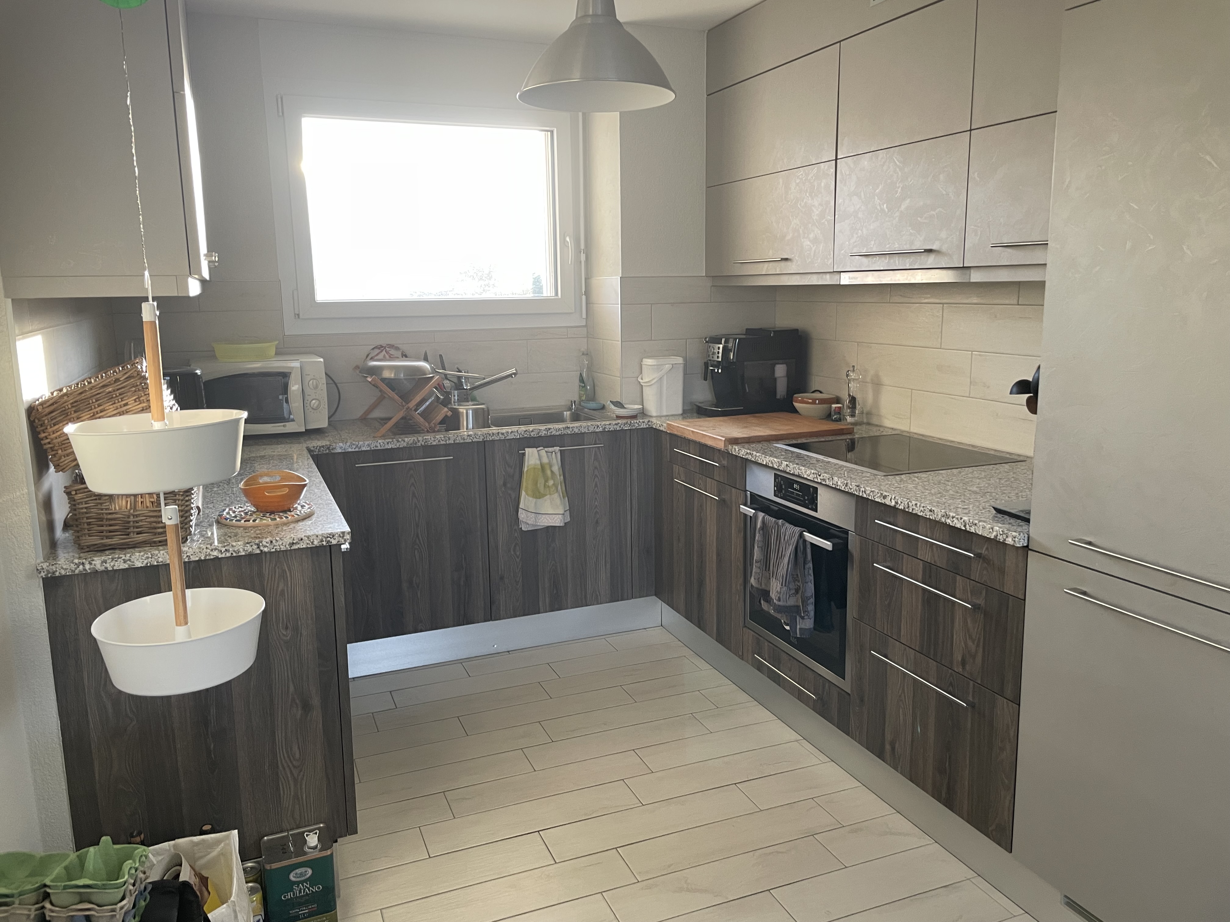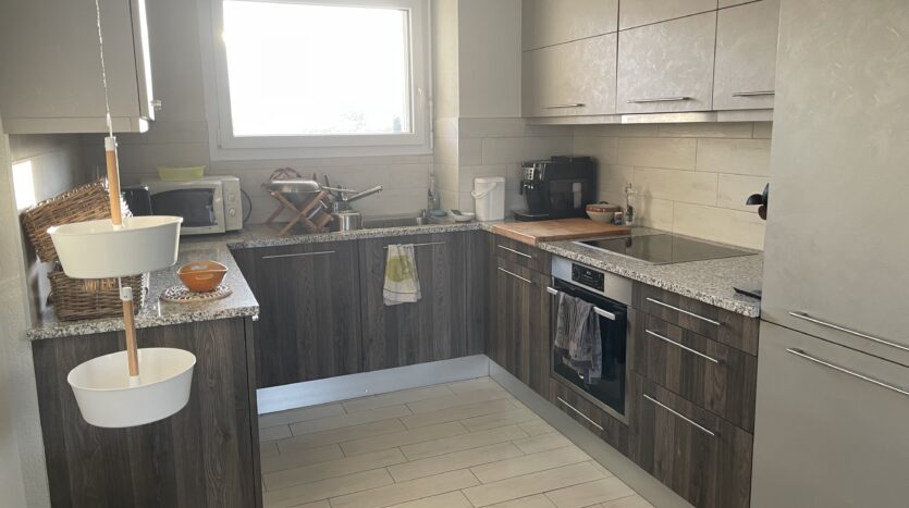 – Une cuisine agencée ouverte sur le séjour, dotée d’un lave-vaisselle, de plaques à induction et d’un spacieux plan de travail