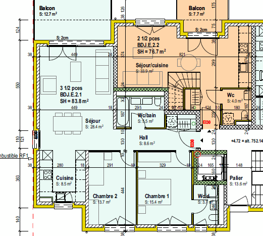 Cet appartement d’une surface d’environ 84 m2 se compose comme suit :