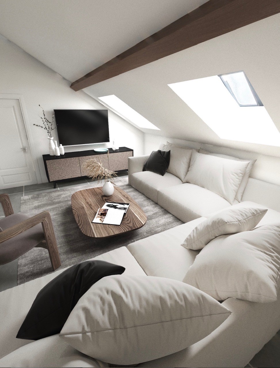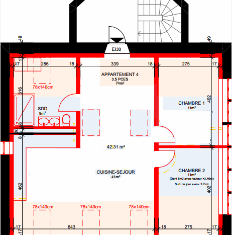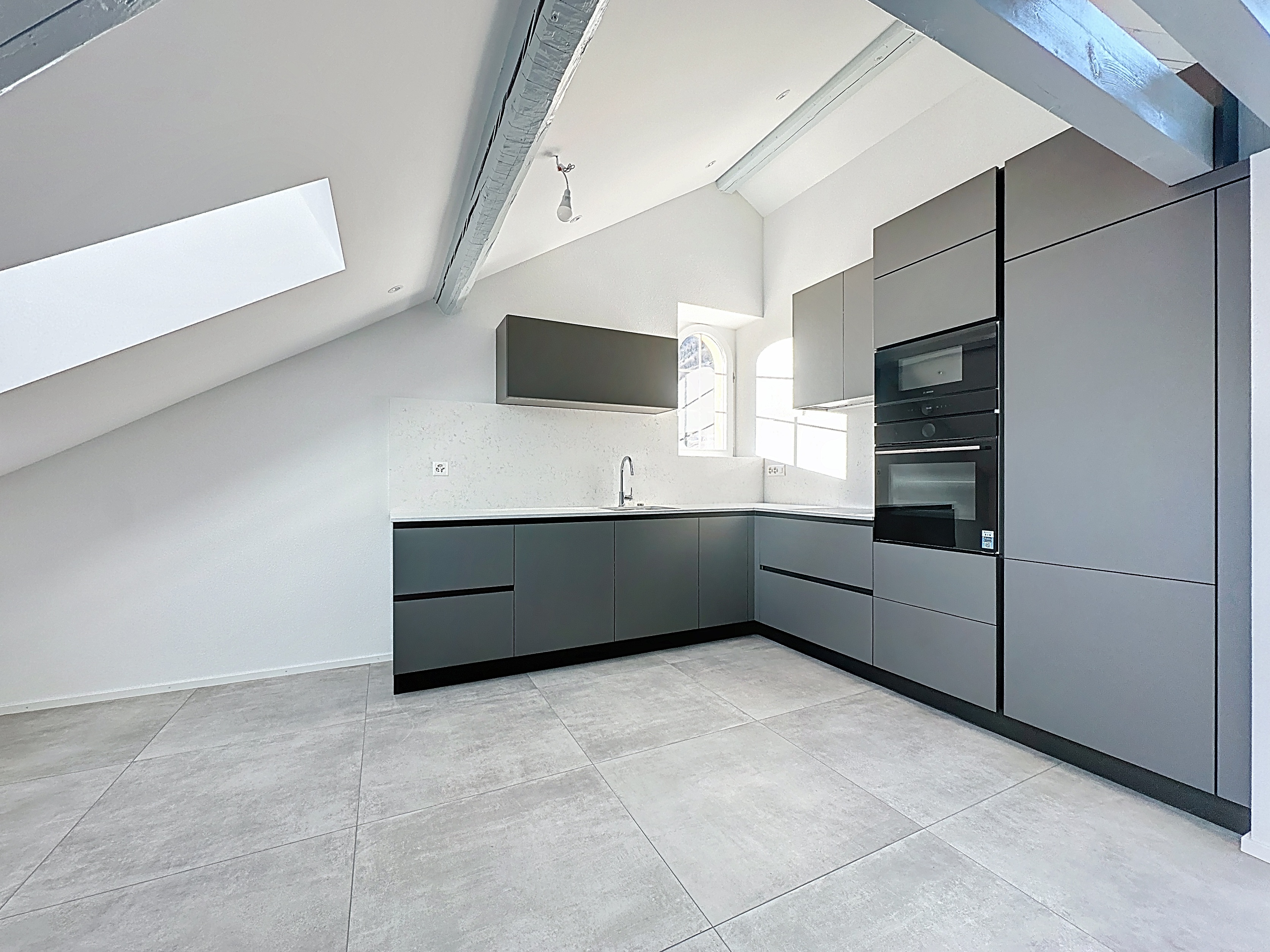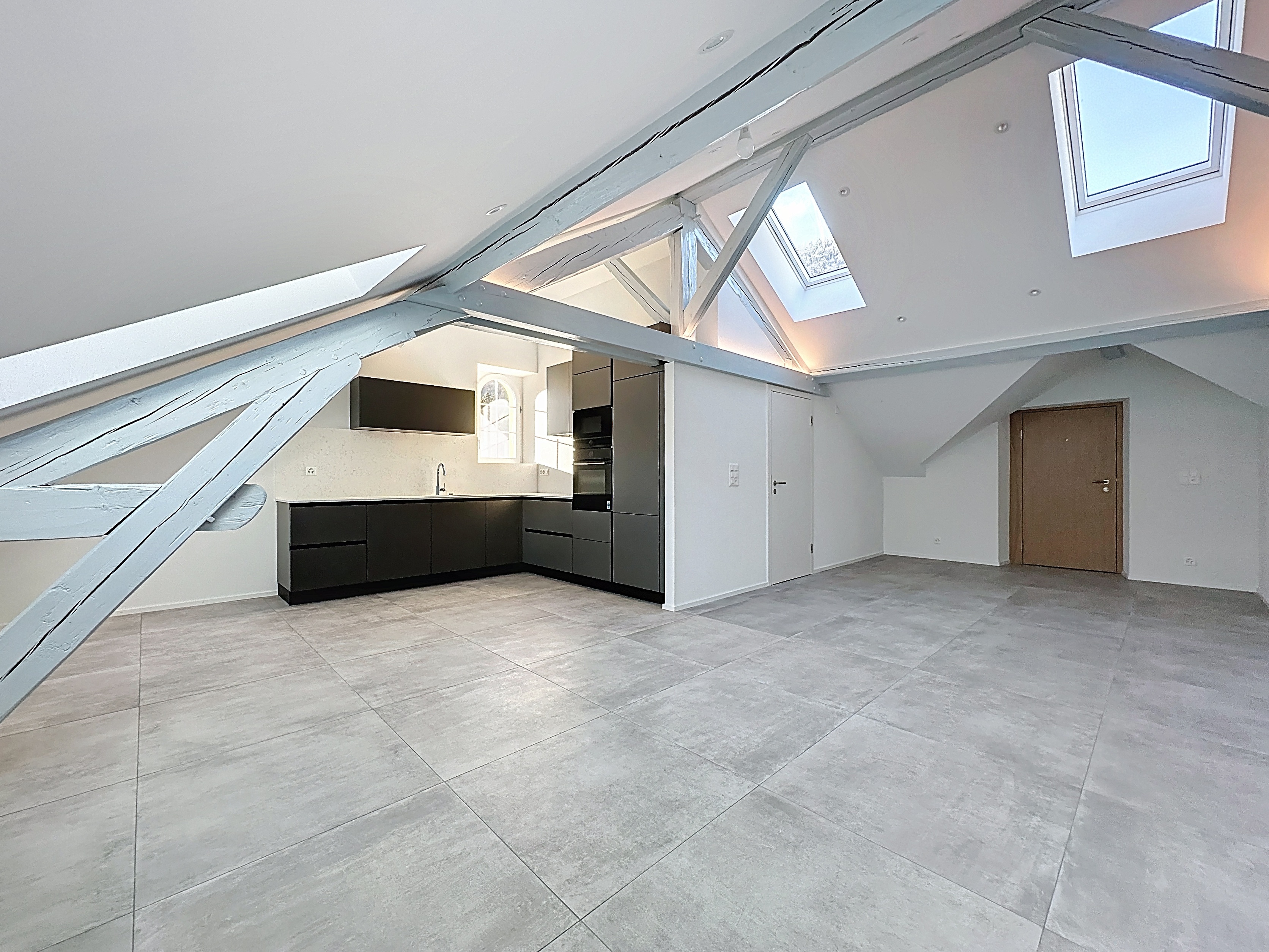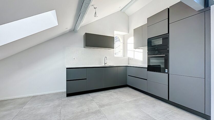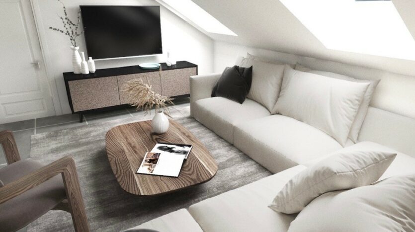 Ce logement d’une surface d’environ 74 m2 est équipé d’un chauffage au sol, de triple vitrage ainsi que d’un éclairage design avec spots intégrés dans le hall, la cuisine et la salle de bains.