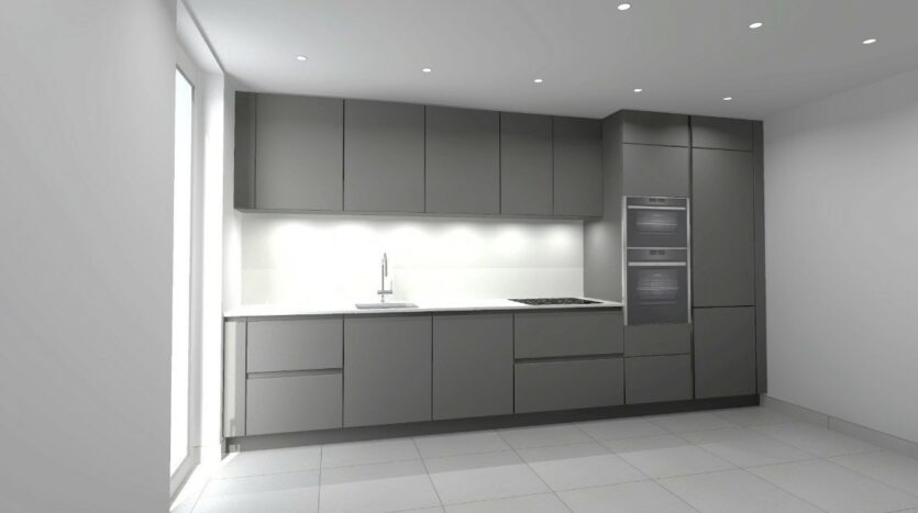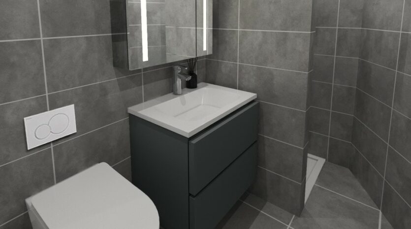 Ce logement d’une surface d’environ 60,5 m2 est équipé d’un chauffage au sol, de triple vitrage ainsi que d’un éclairage design avec spots intégrés dans le hall, la cuisine et la salle de bains.